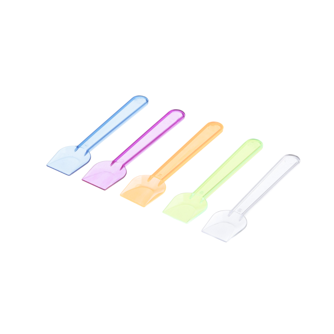 Praktische, bunte Eisspatten aus stabilem Kunststoff, ideal für Eisdielen, Cafés und den professionellen Einsatz. Die handlichen Spatel eignen sich perfekt zum Probieren, Portionieren und Dekorieren von Speiseeis, Desserts und Cremes.